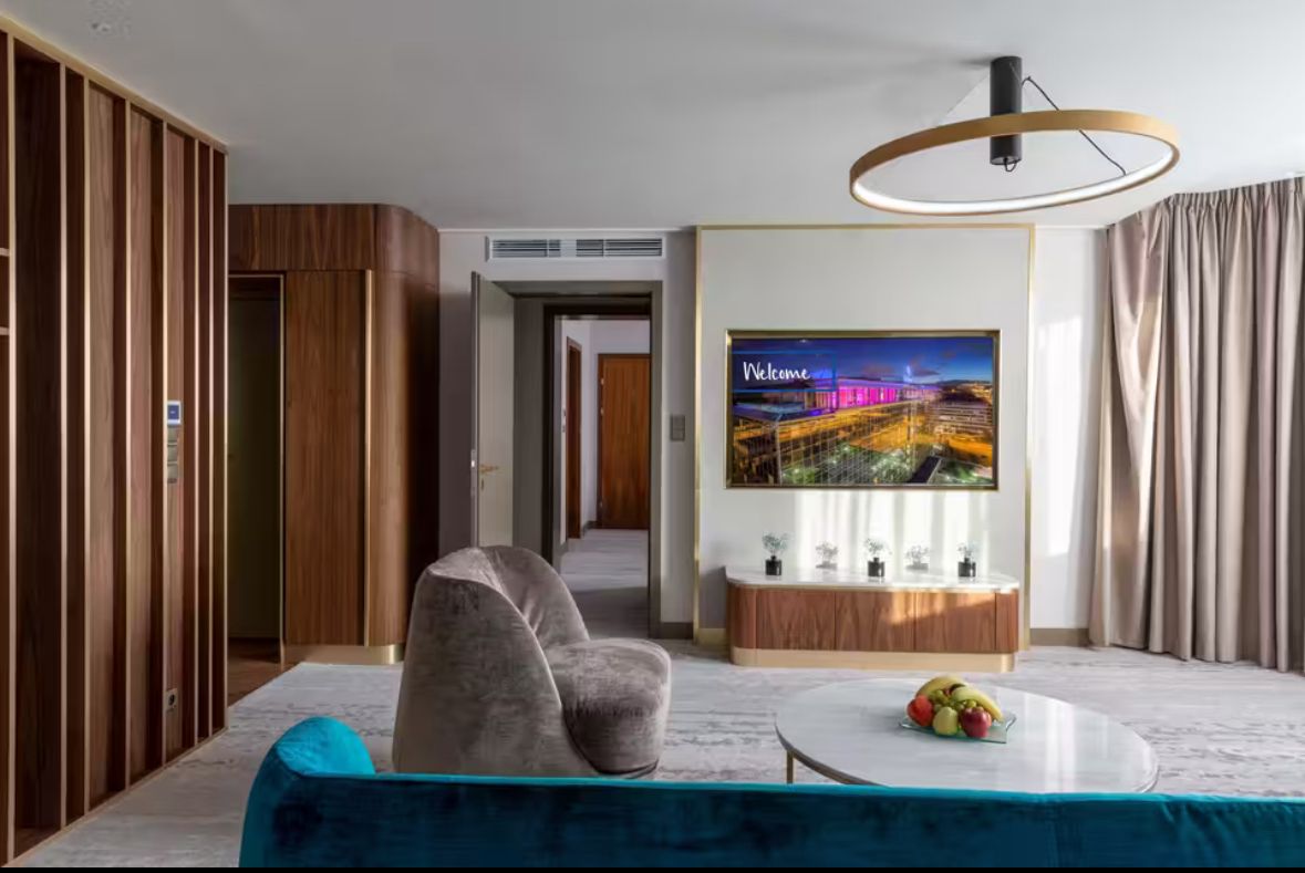 من داخل؟ فخم بطريقة هادئة. لوبي كبير، إحساس راقي، وموظفين دايم مبتسمين وما يتأخرون عليك. الغرف نظيفة ومرتّبة، مساحتها ممتازة، والسرير… يخليك ما تبغى تقوم.