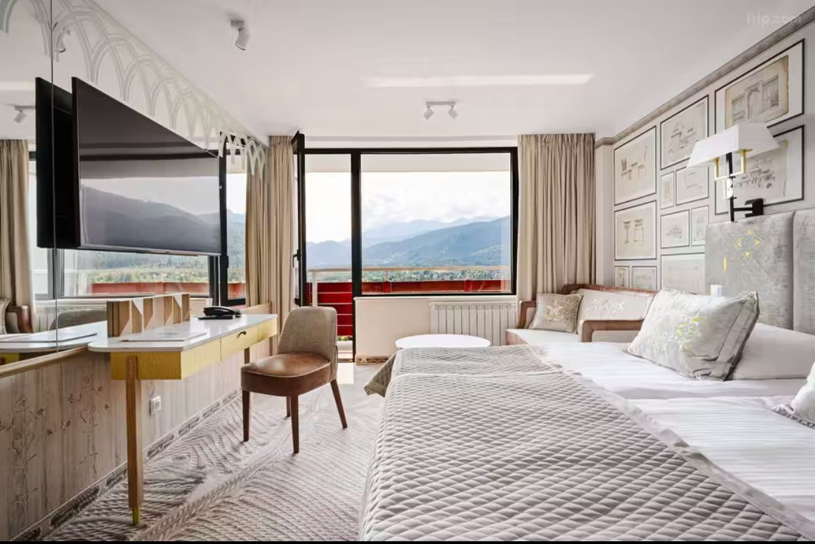 الغرف نظيفة ومرتبة وبعضها بإطلالة جميلة. مو فخم زيادة، بس عملي ومريح ويعطيك جو جبلي لطيف 👌